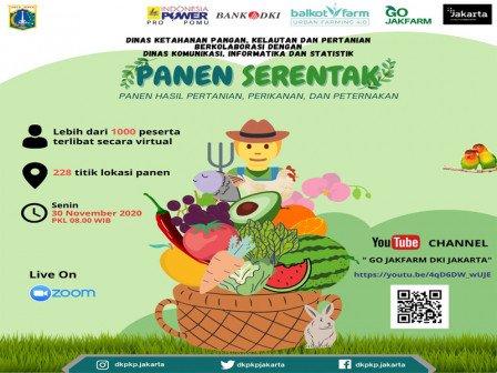 Dinas Ketahanan Pangan, Kelautan, dan Pertanian (KPKP) berkolaborasi dengan Dinas Komunikasi, Informatika, dan Statistik (Kominfotik) DKI Jakarta mengadakan panen serentak secara daring (online), Senin (30/11).