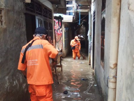 10 Petugas PPSU Bersihkan Lumpur Sisa Genangan di Kampung Melayu