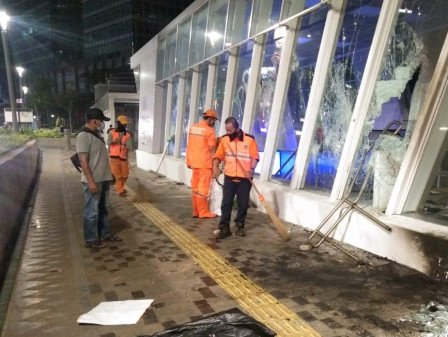 Lurah Karet, Kiki M Akbar mengatakan, sekitar pukul 24.00 pihaknya langsung menerjunkan petugas PPSU untuk melakukan membersihkan areal sekitar halte yang dirusak massa.