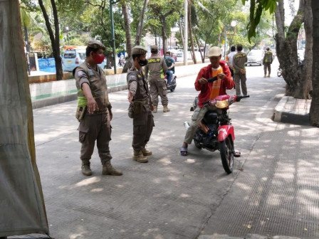20 petugas gabungan dari unsur Satpol PP dan Suku Dinas Perhubungan (Sudinhub) Jakarta Utara menggelar Operasi Tertib Masker (Tibmask) di Jalan