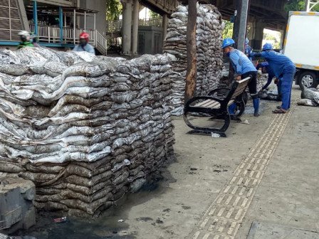 Sebanyak 3.000 karung berisi lumpur hasil pengerukan saluran penghubung (Phb) Jl Ahmad Yani, Jakarta Timur, berhasil diangkut Satgas Sumber Daya Air Kecamatan Matraman, Selasa (11/5).