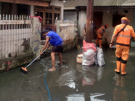 55 Personel Gabungan Bersihkan Sampah dan Lumpur Sisa Banjir di Cililitan