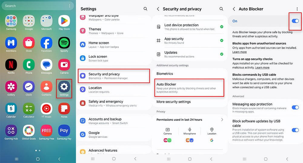 Lindungi Galaxy A06-mu dari kiriman APK berbahaya dengan fitur Auto Blocker