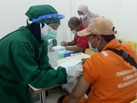 Sebanyak 74 personel PPSU Kelurahan Pinang Ranti, Makasar, Jakarta Timur, mengikuti vaksinasi COVID 19 dosis kedua yang digelar di Ground Floor Tamini Square, Selasa (27/4).