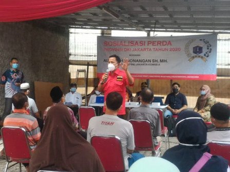 Anggota Komisi A DPRD DKI Jakarta, August Hamonangan, Selasa (27/10), mensosialisasikan Perda No 9 Tahun 2011 tentang Badan Penanggulangan Bencana Daerah (BPBD) pada warga RT 05/02, Kelurahan Ciganjur, Jagakarsa, Jakarta Selatan.