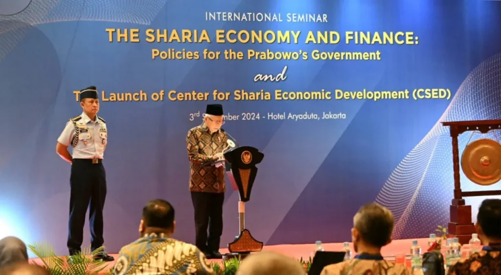 “Saya mengapresiasi INDEF yang hampir tiga dekade terakhir ini konsisten memberikan sumbangsih pemikiran dan kajian kebijakan dalam memajukan perekonomian nasional dan akan turut berperan aktif dalam mengiringi langkah untuk menguatkan peran dan kontribusi ekonomi dan keuangan syariah dalam transformasi ekonomi ke arah yang lebih inklusif,” ujar Wakil Presiden (Wapres) K.H. Ma’ruf Amin, dalam Seminar Internasional dan Peresmian Center for Sharia Economic Development (C-SED) INDEF yang berlangsung di Hotel Aryaduta, Jakarta, pada Selasa (03/09/2024).