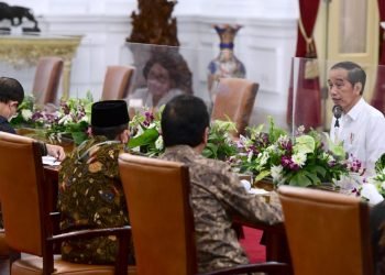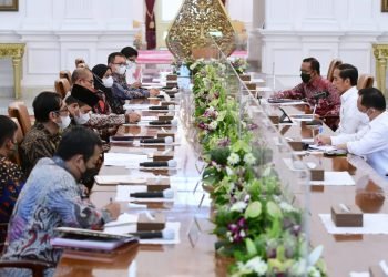 Presiden Joko Widodo menerima Ketua dan Anggota Komisi Pemilihan Umum (KPU) di Istana Merdeka, Jakarta, pada Senin, 30 Mei 2022....