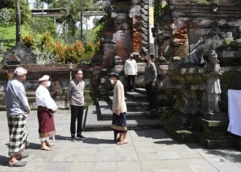 Presiden Joko Widodo berkunjung ke cagar budaya Pura Tirta Empul, Kabupaten Gianyar, Provinsi Bali, pada Jumat, 6 Mei 2022. Pura...