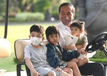 Presiden juga menyapa langsung masyarakat dan membagikan kaus. Beberapa bahkan berswafoto bersama Kepala Negara. Presiden Joko Widodo bermain bersama cucu-cucunya...