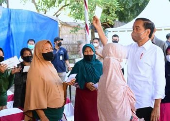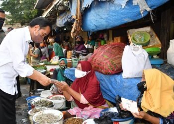 Presiden Joko Widodo membagikan sejumlah bantuan sosial (bansos) bagi para penerima manfaat dan pedagang di Pasar Kanoman, Kota Cirebon, Provinsi...