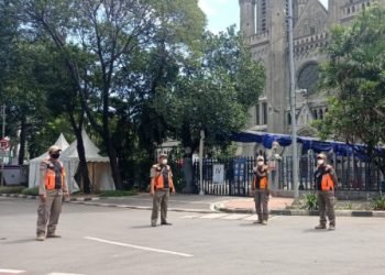 Satpol PP Jakarta Pusat, Jumat (2/4), mengerahkan 60 anggotanya untuk membantu Polri dan TNI dalam pengamanan ibadah Jumat Agung di...