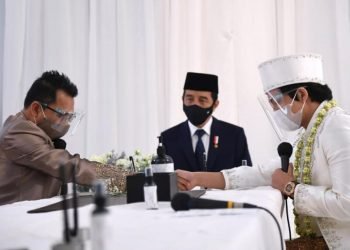 Presiden Joko Widodo menjadi saksi pernikahan bagi Titania Aurelie Nur Hermansyah (Aurel) dengan Muhammad Attamimi Halilintar (Atta) yang berlangsung di...