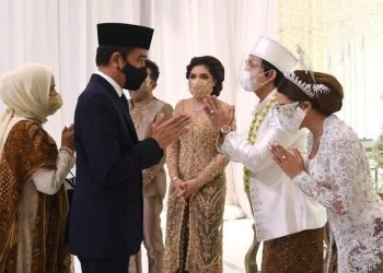 Presiden Joko Widodo beserta Ibu Negara Iriana hadir pada acara akad nikah Titania Aurelie Nur Hermansyah (Aurel) dengan Muhammad Attamimi...