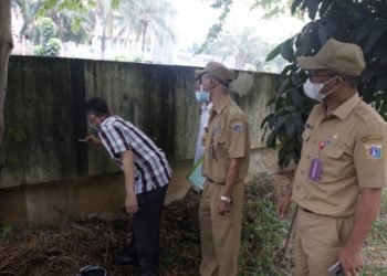 Asisten Perekonomian dan Pembangunan (Asekbang) Kota Jakarta Pusat, Bakwan Ferizan Ginting, melakukan peninjauan lahan yang akan dibangun embung tahap kedua...