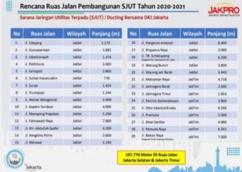 Pelaksanaan pembangunan sarana jaringan utilitas terpadu (SJUT) di Jakarta Selatan dan Jakarta Timur dalam rangka peningkatan kualitas pedestrian di Jakarta...