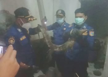 Petugas Sektor 8 Suku Dinas Penanggulangan Kebakaran dan Penyelamatan (Sudin Gulkarmat) Jakarta Utara dan Kepulauan Seribu berhasil mengevakuasi seekor biawak...