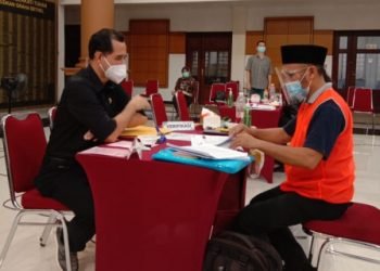 Aparatur Kelurahan Utan Panjang, Kemayoran, Jakarta Pusat bersama pengurus RT/RW melakukan pendataan warga lanjut usia (lansia) untuk vaksinasi COVID-19. "Pendataan...