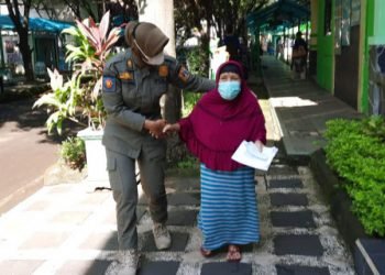 Satpol PP Pulogadung Bantu Jemput Lansia yang Akan Divaksin