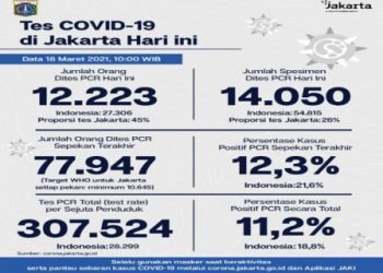 Perkembangan COVID-19 di Jakarta Per 18 Maret 2021, Warga Diimbau Disiplin 3M