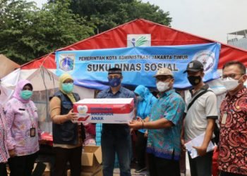 Sudin Sosial Jakarta Timur memberikan sejumlah bantuan bagi warga terdampak kebakaran di Jl Perintis Kemerdekaan RT 08/01 Kelurahan Pulogadung, Kamis...