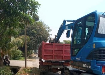 Satuan Pelaksana Sumber Daya Air (Satpel SDA) Kecamatan Cilincing, Jakarta Utara, melakukan pengerukan sedimen lumpur dan sampah di saluran air...
