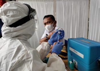 Sebanyak 60 aparatur sipil negara (ASN) yang bekerja di lingkup Kecamatan Mampang Prapatan, Jakarta Selatan, Rabu (10/3), disuntik vaksin COVID-19....