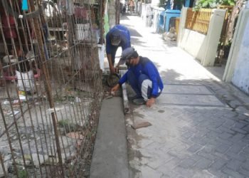 Suku Dinas Sumber Daya Air (SDA) Kepulauan Seribu memperbaiki saluran air di RT 03/03, Kelurahan Pulau Kelapa, Kecamatan Kepulauan Seribu...