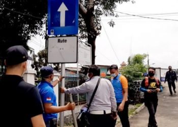Suku Dinas Perhubungan (Sudinhub) Jakarta Barat, memasang rambu lalu lintas untuk rute angkutan umum di tiga titik di kawasan Kota...