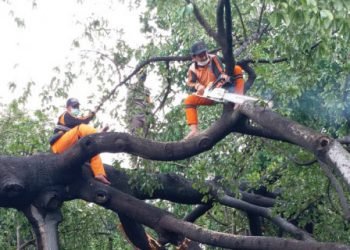 Pohon gadog, gintung atau kerinjing (Bischofia javanica) setinggi 12 meter dengan diameter 1,2 meter tumbang di areal TPU Mataram Bojonegoro...