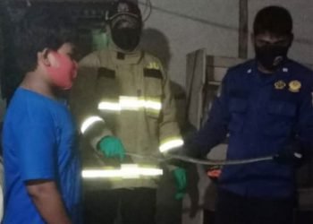 Seekor anak ular sanca sepanjang kurang lebih 70 sentimeter berhasil dievakuasi petugas Sektor 8 Suku Dinas Penanggulangan Kebakaran dan Penyelamatan...