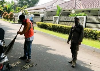 Enam pelanggar tertib masker di Jalan M. Saidi RT 08/01, Kelurahan Petukangan Selatan, Pesanggarahan, Jakarta Selatan, disanksi membersihkan sampah, Senin...