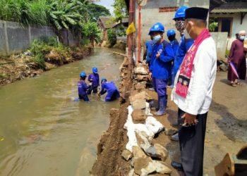 Satu unit alat berat jenis backhoe mini dikerahkan untuk penanganan turap dan tanggul longsor di Kali Cipinang, RT 04/02 Kelurahan...