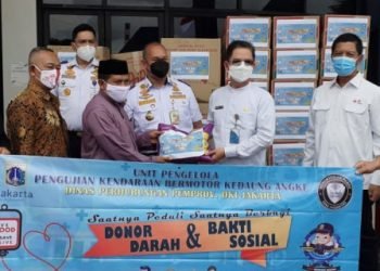 Unit Pengelola Pengujian Kendaraan Bermotor (UP PKB) Kedaung Angke menyalurkan bantuan berupa kebutuhan pokok dan pakaian kepada warga terdampak banjir...