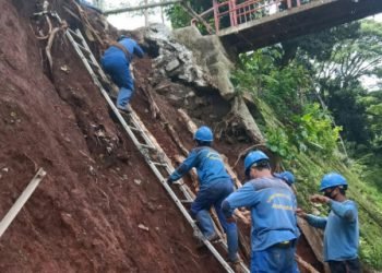 Sebanyak 13 anggota Satgas Sumber Daya Air (SDA) Kecamatan Ciracas dikerahkan untuk penanganan turap Kali Baru yang longsor di Jl...