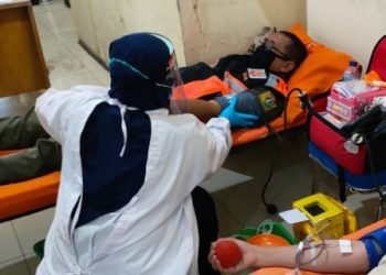 Kegiatan sosial donor darah yang digelar PMI Jakarta Pusat, Rabu (24/2), diikuti 100 pendonor dari anggota satpol PP, PPSU dan...