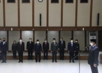 Gubernur Provinsi DKI Jakarta, Anies Baswedan, melantik dan mengambil sumpah jabatan kepada 12 (dua belas) Pejabat Pimpinan Tinggi Pratama di...