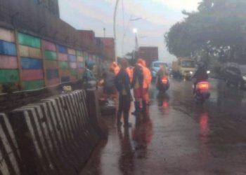 Personel Satuan Pelaksana Sumber Daya Air (Satpel SDA) Kecamatan Tanjung Priok langsung bergerak cepat menangani genangan yang terjadi di Jl...