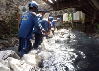 Sebanyak 20 personel Satgas Sumber Daya Air (SDA) menguras saluran penghubung Kali Ba u di RW 07 Cipinang Besar Utara...