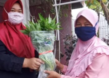 Kelompok Wanita Tani (KWT) Hidroponik Farmers Kampung Kelor, Kelurahan Pulau Tidung, Kecamatan Kepulauan Seribu Selatan, Kepulauan Seribu, memasarkan hasil panen...