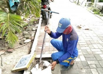 Suku Dinas Sumber Daya Air (SDA) Kepulauan Seribu melakukan pembersihan sumur resapan dan lubang biopori di RW 04, Pulau Pramuka,...