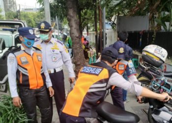 Petugas Suku Dinas Perhubungan Jakarta Pusat, Rabu (10/2), menertibkan 57 kendaraan roda dua yang melanggar parkir di Jl KH Wahid...