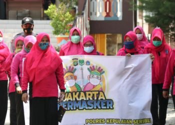 Gerakan Jakarta Bermasker sebagai salah satu upaya mencegah penularan COVID-19 terus digencarkan Kelurahan Pulau Panggang, Kecamatan Kepulauan Seribu Utara, Kepulauan...