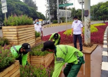 Penataan taman dan jalur hijau di Jl Raya Halim Perdanakusuma, Kebon Pala, Makasar, Jakarta Timur, sepanjang 1,8 kilometer yang dikerjakan...