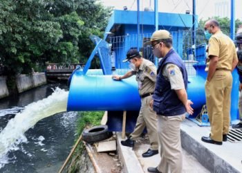 Pelaksana Harian (Plh) Wali Kota Jakarta Pusat, Irwandi, Senin (1/2), mengecek kondisi Rumah Pompa Rajawali Selatan dan Industri di wilayah...