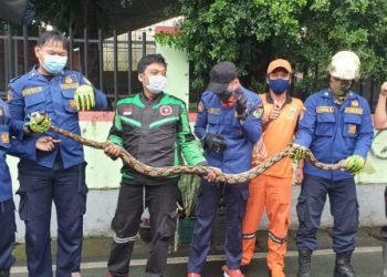 Ular Sanca sepanjang 2,5 meter berhasil diamankan petugas Sudin Penanggulangan Kebakaran dan Penyelamatan Jakarta Timur, Jumat (29/1) sekitar pukul 05....