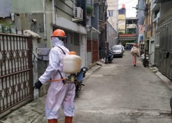 Jajaran Kelurahan Pademangan Timur, Pademangan, Jakarta Utara, melakukan penyemprotan cairan disinfektan di Jl Pademangan IV dan IX. Penyemprotan dilakukan untuk...