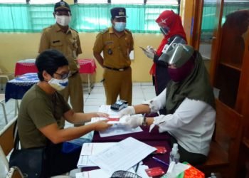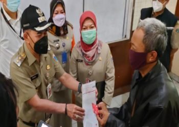 Pelaksana Harian (Plh) Wali Kota Jakarta Pusat, Irwandi, Senin (25/1), memantau proses penyaluran bantuan sosial tunai (BST) yang dilakukan pada...