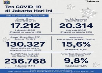 Perkembangan COVID-19 di Jakarta per 23 Januari 2021, Warga Diimbau Disiplin 3M