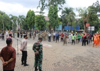 Satpol PP Kecamatan Cilandak, Jakarta Selatan, dibantu petugas TNI dan Polisi melakukan monitoring tempat usaha rumah makan, pertokoan dan perkantoran...