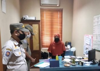 Petugas gabungan Kelurahan Gelora Tanah Abang, Jakarta Pusat, menggelar pengawasan protokol kesehatan di tempat usaha dan perkantoran, Kamis (21/1). "...